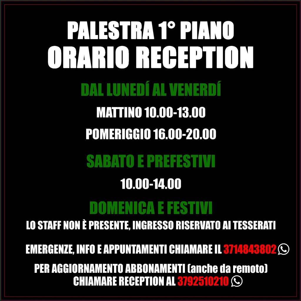 📞 3792510210 – reperibile negli orari sopra indicati oppure su WhatsApp fuori dall’orario reception.