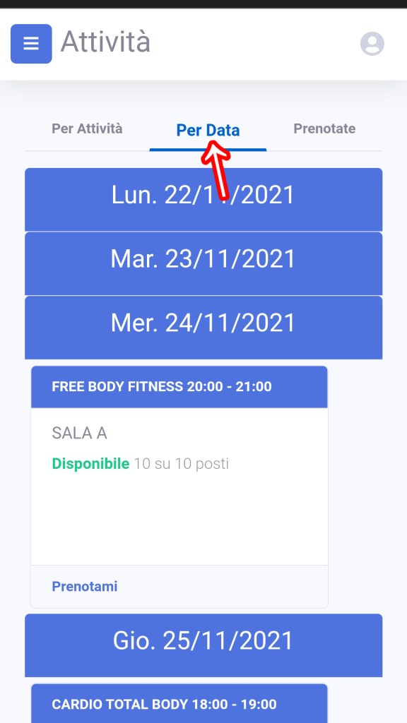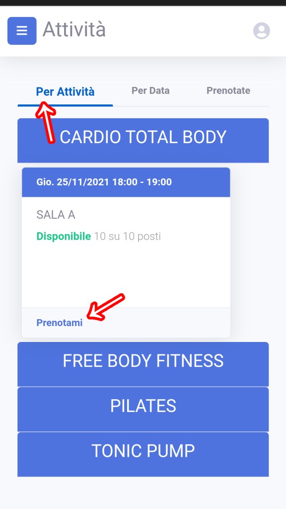 Cercate l’attività che desiderate e prenotate cliccando su “prenotami”